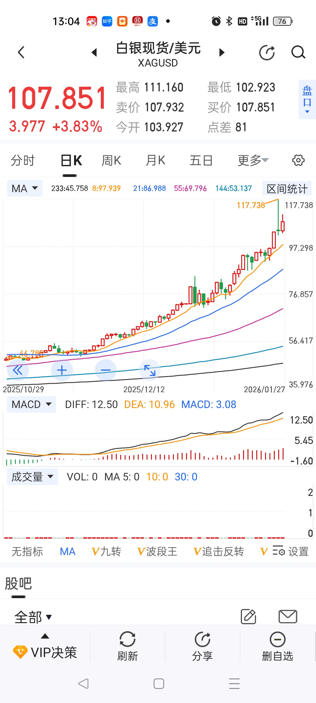 白银见中级顶,未来低位在70-75之间